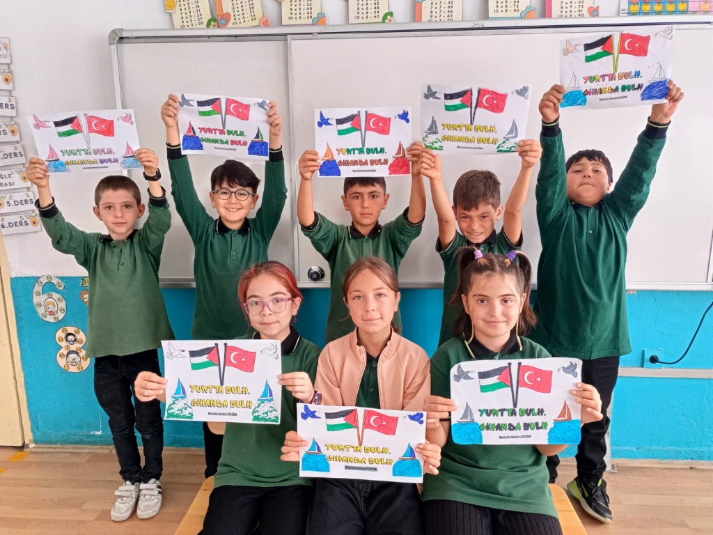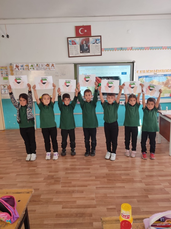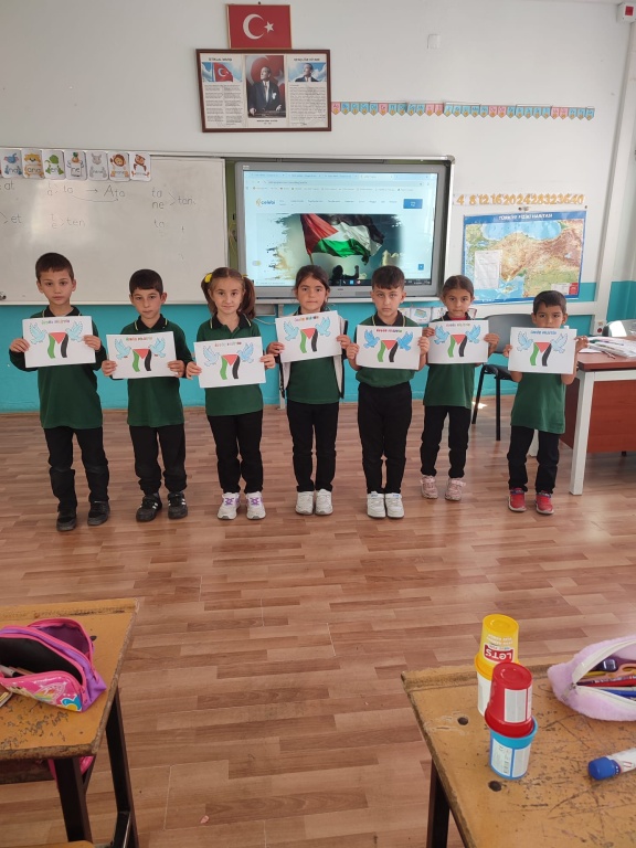 Okulumuzda Filistin'de yaşanan insanlık dramına dikkat çekmek amacıyla öğretmen ve öğrencilerimiz tarafından etkinlikler gerçekleştirildi.